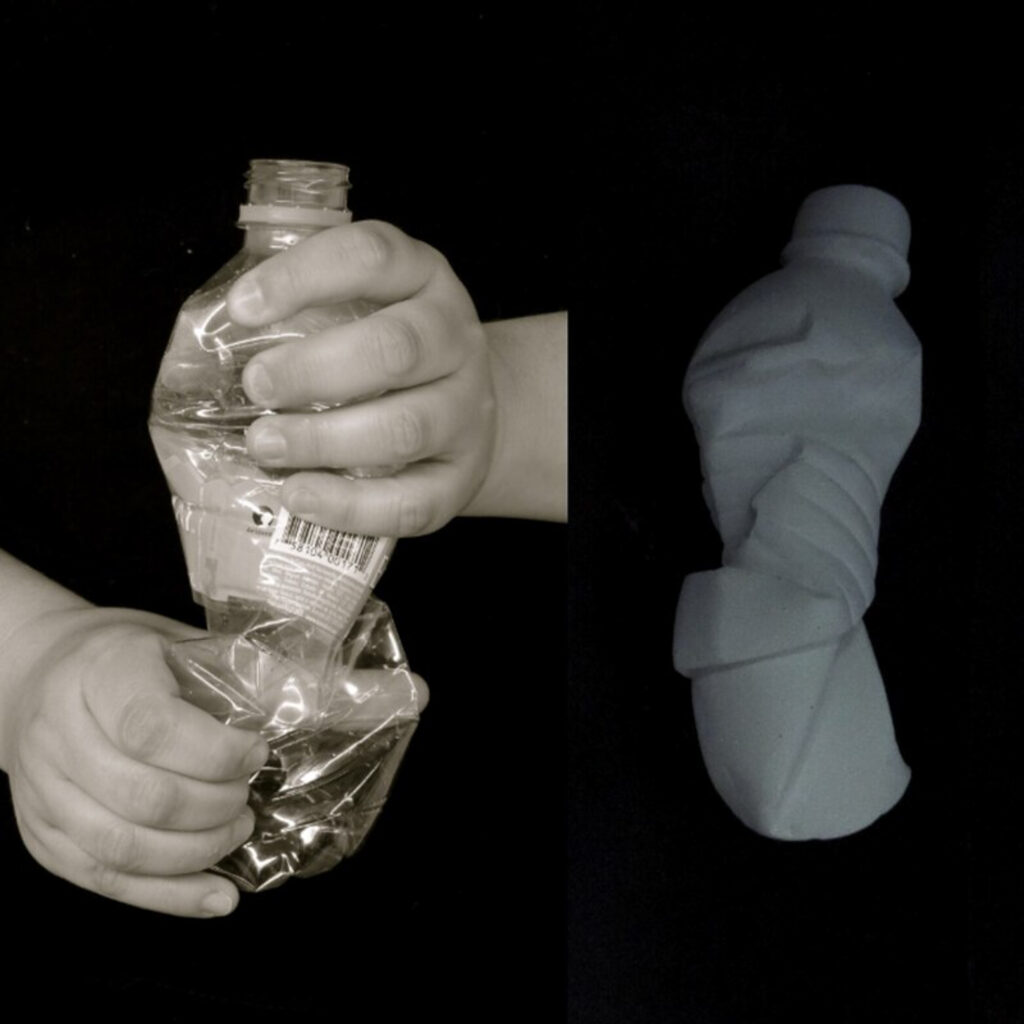 Serie escultórica que reflexiona sobre el ciclo de consumo y desecho. A partir de bloques de yeso tallados a mano —en un proceso lento y meticuloso— se representan objetos cotidianos como una lata, un cartón de leche o una botella de agua. El interés se centra en reproducir la forma en que los desechamos, en contraste con la velocidad con la que son producidos y descartados industrialmente. Las esculturas funcionan como una animación en volumen, invitando al espectador a observar de cerca aquello que normalmente pasa desapercibido.