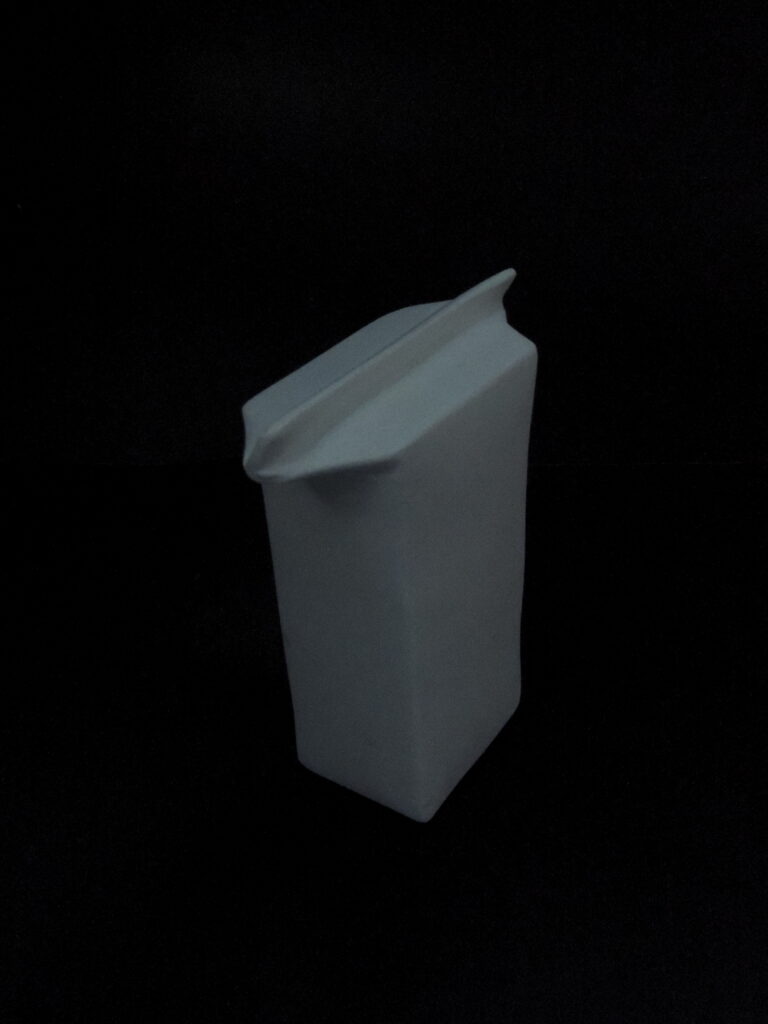 Serie escultórica que reflexiona sobre el ciclo de consumo y desecho. A partir de bloques de yeso tallados a mano —en un proceso lento y meticuloso— se representan objetos cotidianos como una lata, un cartón de leche o una botella de agua. El interés se centra en reproducir la forma en que los desechamos, en contraste con la velocidad con la que son producidos y descartados industrialmente. Las esculturas funcionan como una animación en volumen, invitando al espectador a observar de cerca aquello que normalmente pasa desapercibido.